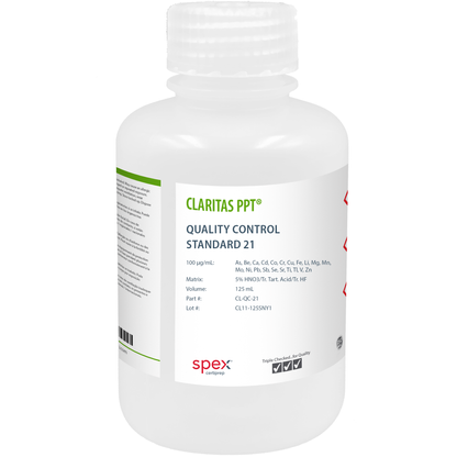 Claritas PPT® Grade ICP-MS Quality Control Standard 21, 100 µg/mL (100 ppm) in 5% HNO3/tr. Tartaric Acid/tr. H, 125 mL