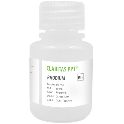 Claritas PPT® Grade Rhodium, 10 µg/mL (10 ppm) for ICP-MS in 2% HCl, 30 mL