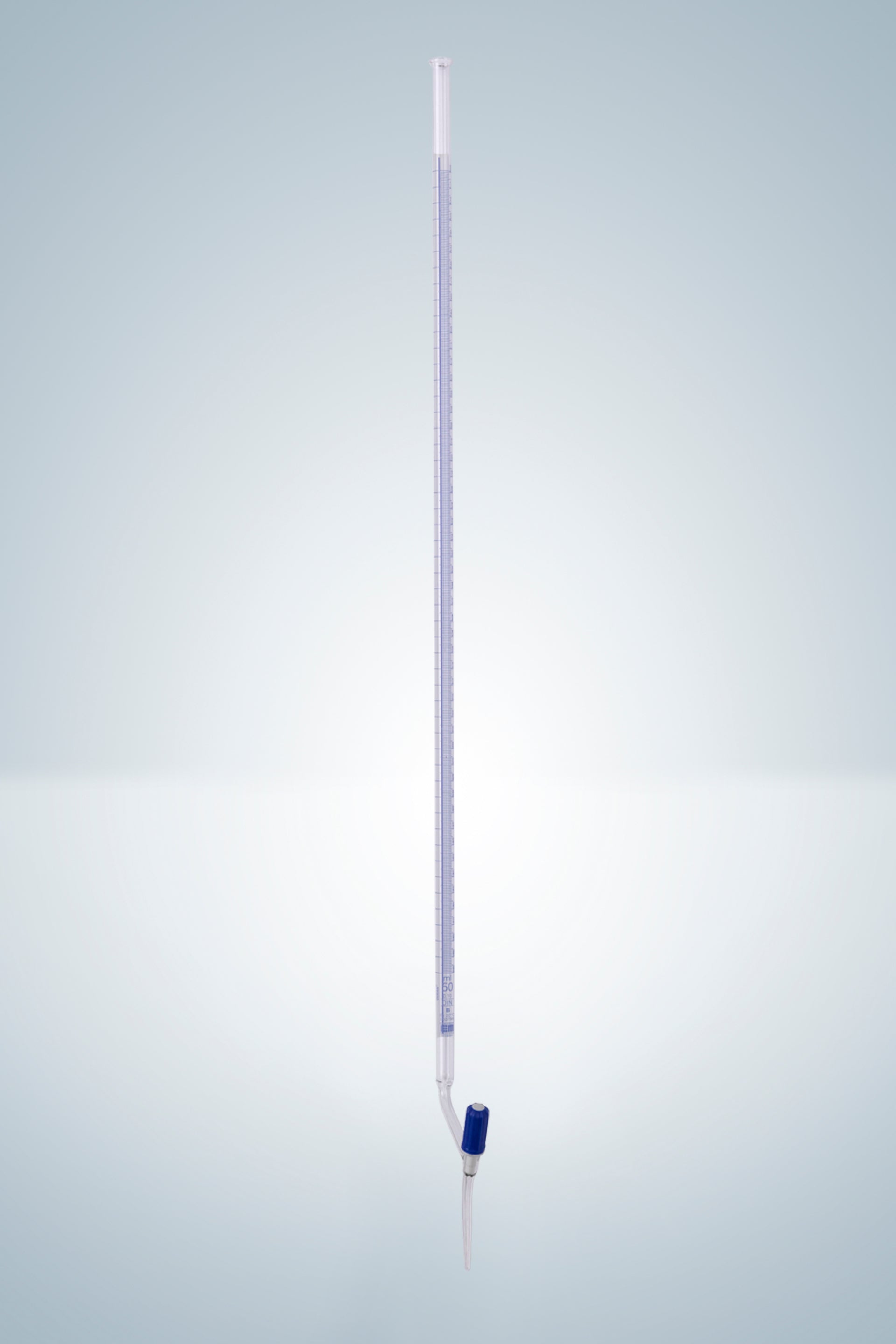 Burettes DURAN®, class B, blue graduation, 10:0,02 ml, Schellbach, short line, lateral valve stopcock with PTFE spindle, acc. to DIN EN ISO 385.