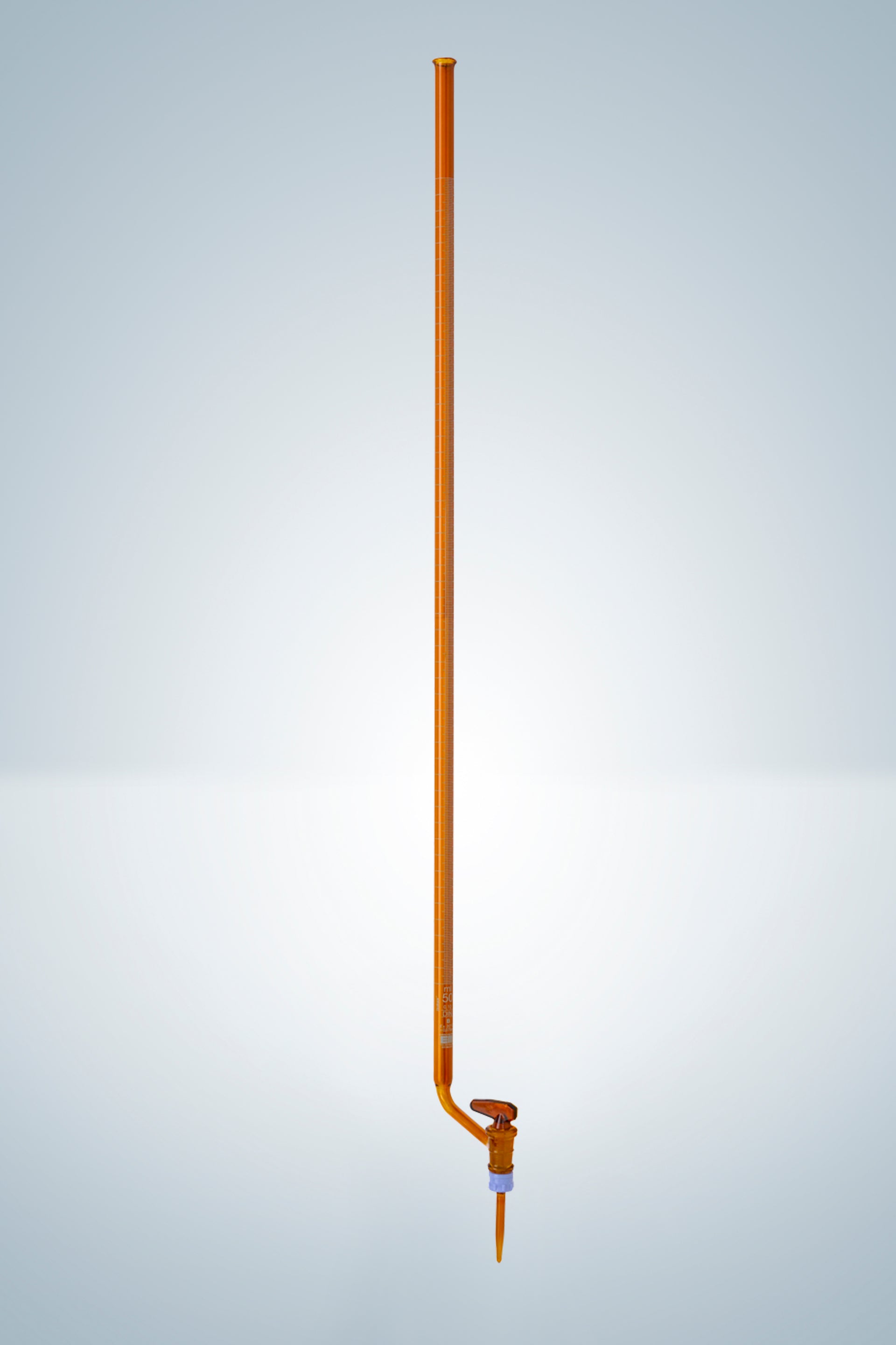 Burettes DURAN®, class B, white graduation, 25:0,05 ml, amber glass, short line, lateral stopcock with glass key, acc. to DIN EN ISO 385.