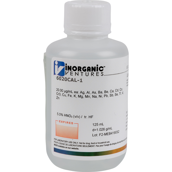 These calibration standards have been specifically prepared to meet the requirement of EPA method 6020. The solutions group compatible elements taking into consideration the order of addition. They have also been tested for stability over a number of years and have a 4 year shelf life in the proprietary TCT bags offered by Inorganic Ventures.