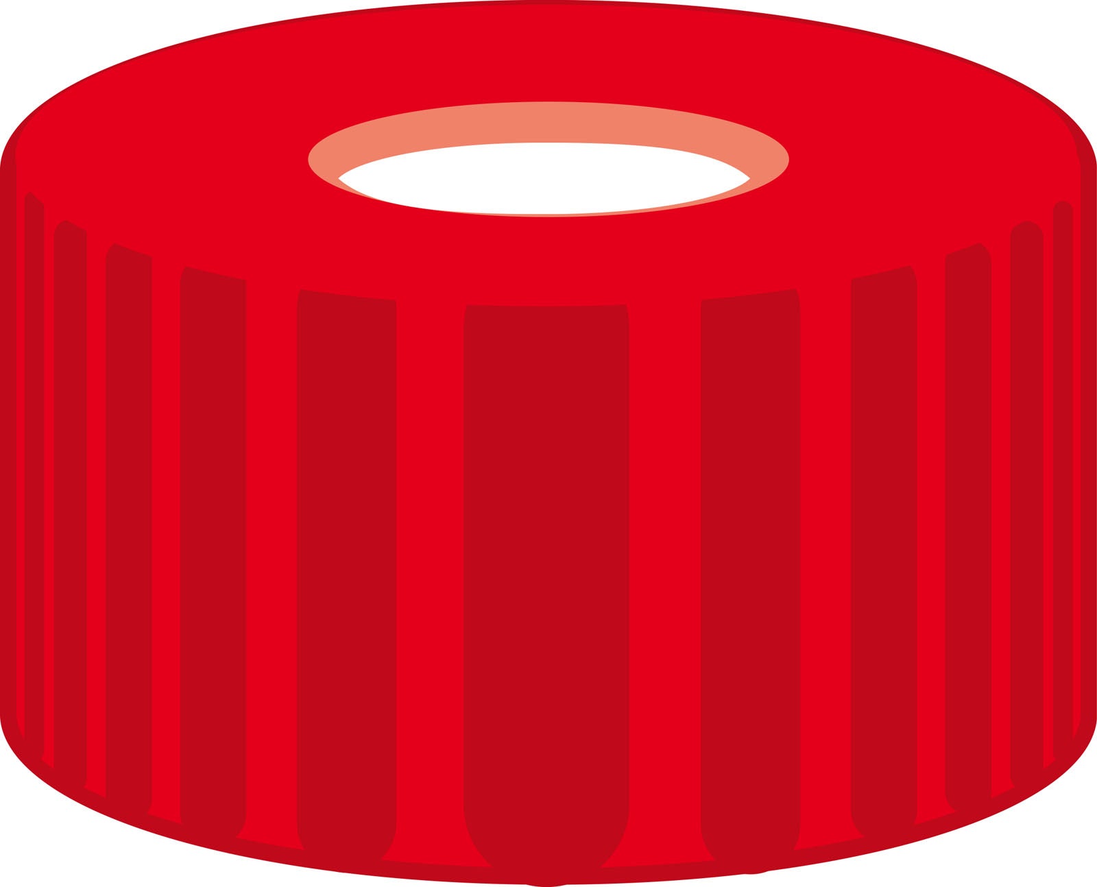 - Screw closure, N 9, PP, red, center hole, Silicone white/PTFE red, 1.0 mm