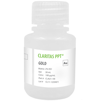 Claritas PPT® Grade Gold, 100 µg/mL (100 ppm) for ICP-MS in 2% HCl, 30 mL