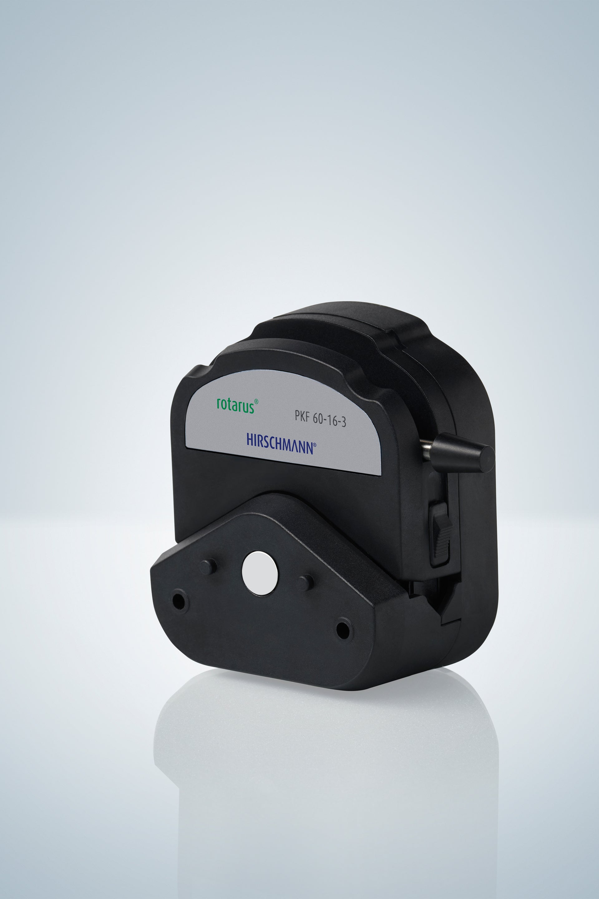 rotarus® PKF 60-16-3, single-channel pump head, 3 rollers. Economical pump head made of durable PPS plastics for continuous feeding or precise dispensing of target volumes. Simple and easy loading of the tubing. One of the two PKF-60 adapter-sets is necessary to attach the pump head to the Hirschmann rotarus® drives.