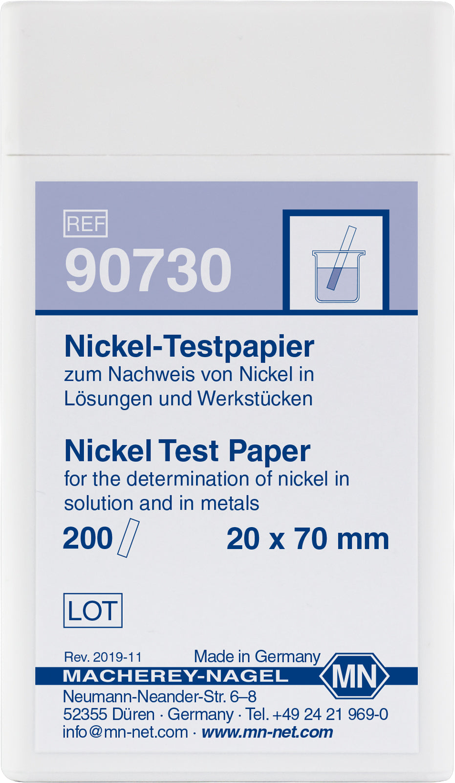 Nickel test paper allows the quick and easy detection of Nickel (Ni²⁺).