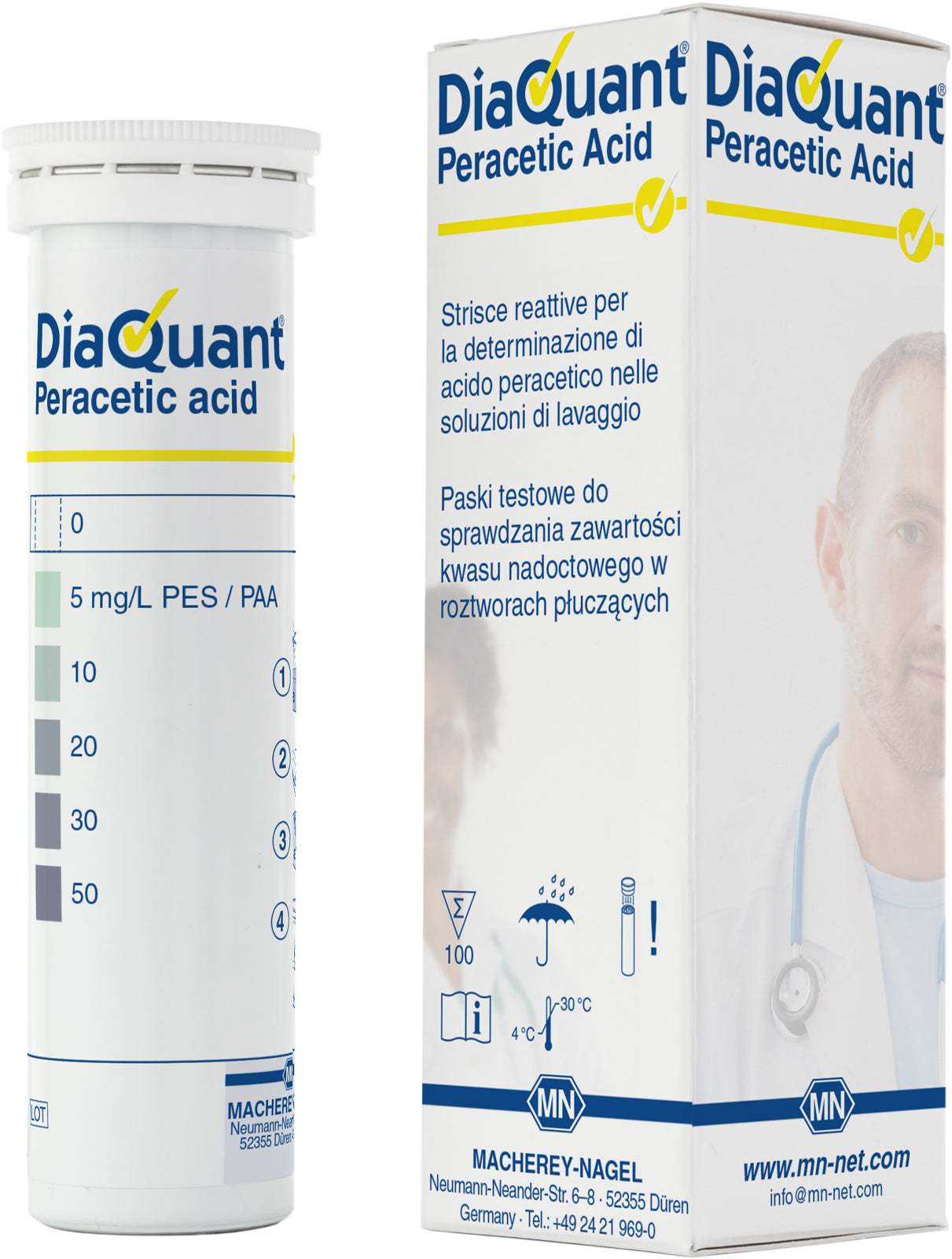 - Semi-quantitative test strips DiaQuant Peracetic acid