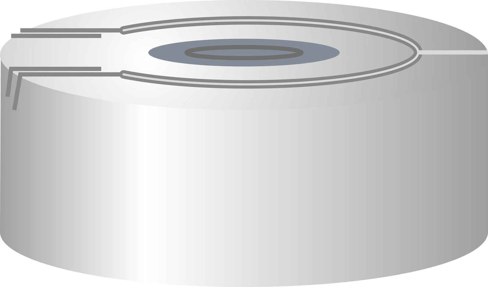 These closures with molded Butyl/PTFE septa are only laminated with PTFE in the contact area with the sample. Thus the elastomeric Butyl can achieve on the vial's glass rims a very tight seal, while in comparison a completely PTFE covered septum would have a very slippery surface on the glass and could easily be twisted around. These typically called "Pharma-Fix" closures have a good analytical purity. The bridges of the cap's scorelines break open at an internal vial pressure exceeding 3 bars (± 0.5 bars), thus releasing overpressure in a crontrolled way. Functionality of the cap is not depending on the design of the vial's crimp neck (beveled top, flat crimp neck).