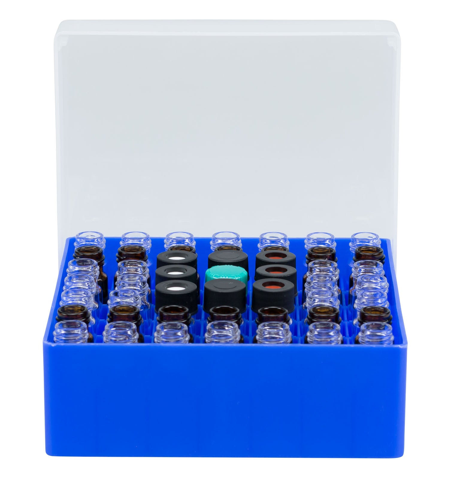 - Vial container, max. diameter 15 mm, 49 pos. with lid and divider, stackable