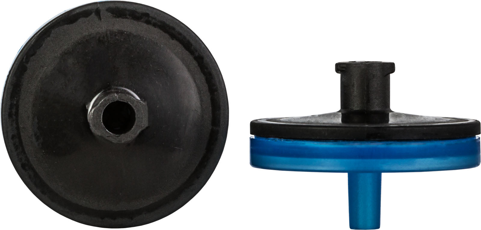 Combi syringe filters are recommended for solutions with a high load of particulate matter or for highly viscous solutions. These products combine a coarse glass fiber prefilter and a small-pore regenerated cellulose membrane as main filter. The hydrophilic RC membrane is for filtration of aqueous and organic – aqueous liquids, i.e. polar and medium polar sample solutions. All CHROMAFIL filters are autoclavable (121 °C and 1.1 bar for 30 min)!