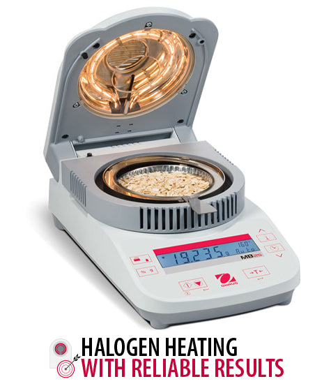 Halogen heating and dual weight-temperature calibration provide fast, reliable results.