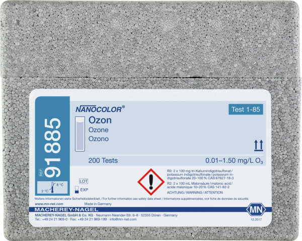 Hazardous material: Yes Shelf life (from production): 3 Years Parameter: Zinc Brand: NANOCOLOR Storage temperature: 15−25 °C Remark: Measuring range on NANOCOLOR VIS II NanOx Metal: Yes NanOx N: No Sea water analysis: Yes Evaluable on photometer: UV/VIS II Evaluable on photometer: VIS II Evaluable on photometer: 500 D Crack-Set: Yes Method: Zinc - Zincon Scope of delivery: Rugged box with reagents for 250 tests. Platform: NANOCOLOR standard tests Sludge reagent set: Yes Measuring range: Zinc - 0.02–3.0 mg/L Zn²⁺ Based on norm: Analogous to APHA 3500-Zn F Test No.: 1-95 -