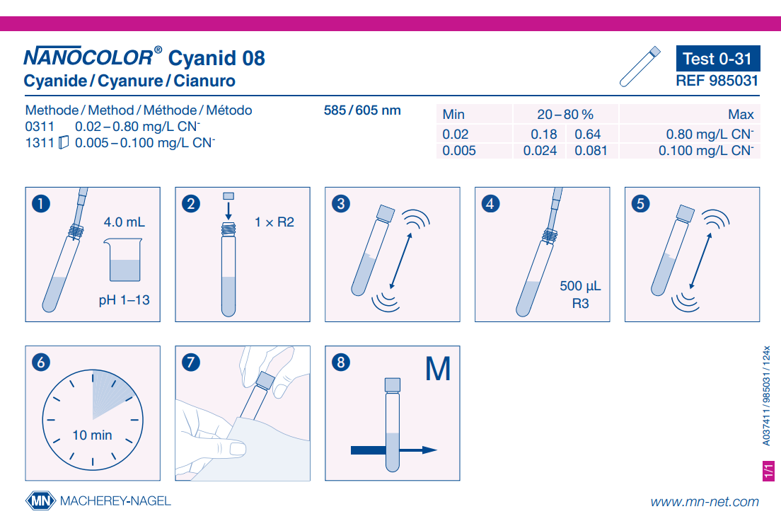 - Tube test NANOCOLOR Cyanide 08