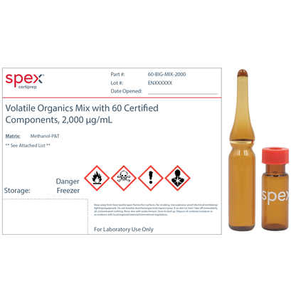 Volatile Organics Mix with 60 Certified Components for US EPA Methods 502.2 and 8260, 2,000 μg/mL (2,000 ppm) in Methanol-P&T, 1mL