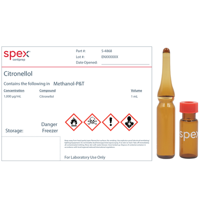 - Citronellol Single-Component CannStandard, 1,000 μg/mL (1,000 ppm), CAS #106-22-9 in Methanol-P&T, 1 mL