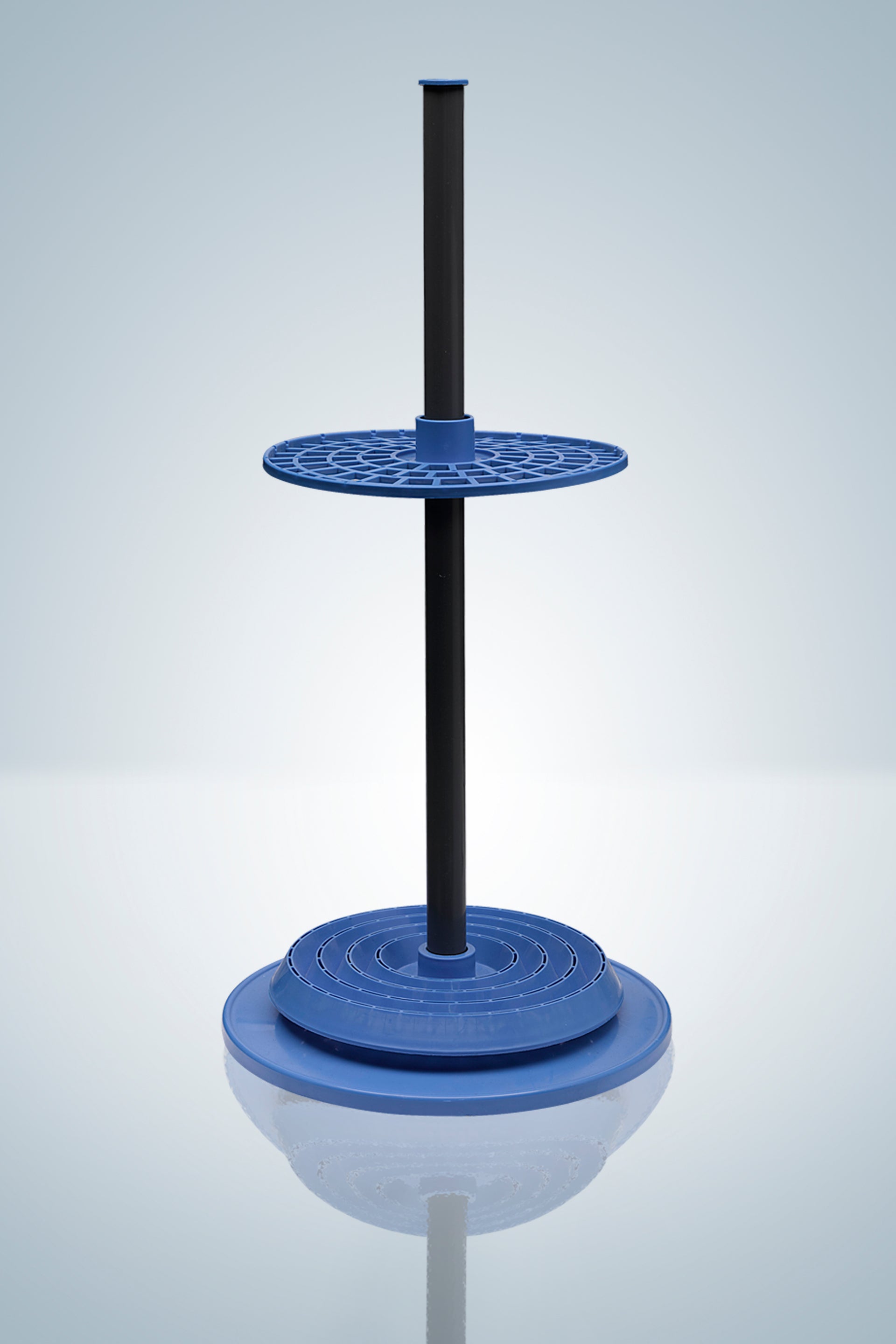 Pipette-rack, PP, Heigth 470 mm, Drm. 230 mm, rotatable with a stable base and rotatable disk. With 94 holes in different diameters for volumetric pipettes of all sizes, graduated to 25 ml.