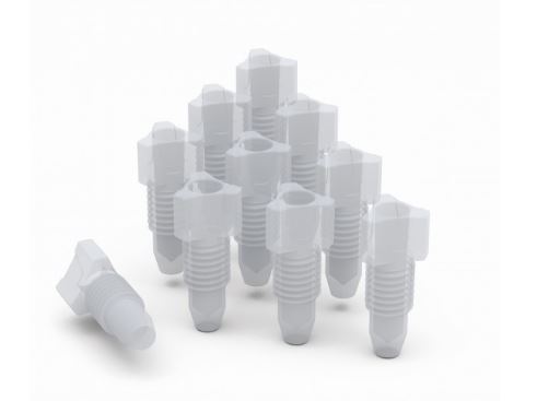 Blind Fitting (UNF 1/4" (VE=10 Stk.)) PFA-natural, for capillary connection (thread UNF 1/4). Packing unit: 10 pcs.