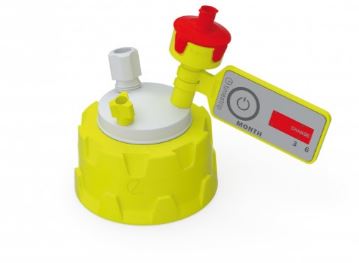 Adapted to the requirements in preparative HPLC. Tubing with O.D. 4.0 up to 6,35 mm can be inserted onto the ground of the bottle by means of the b.safe Fittings Preparative made of PTFE. The conical seal cone clamps the tubing and seals the connection safely. The b.safe Air Valve is especially adapted to the flow rate in HPLC. The integrated non-return valve avoids evaporation of solvents and lets flow ambient air into the bottle in case of vacuum. The upstream porous PTFE membrane restrains pollutant particles and other contaminations from outside. The 6 months service life of the filter can be easily monitored through either activating the display on the cap and exchanging the valve in case of completely red colouring or documentation of the exchange date by hand and clip in the display at the valve.