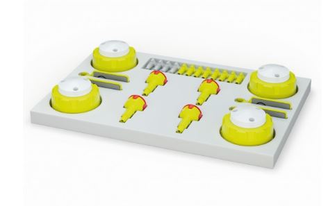 Starter Box B (GL 45) Scope of delivery: 4 ea. b.safe Cap GL 45 with 2 capillary connections, 4 ea. air valves with service life indicator, 8 ea. Fittings for tubing O.D. 3.2 mm (PFA-yellow, UNF 1/4), 4 ea. blindfitting (PFA, UNF 1/4").
