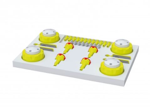 Starter Box C (GL 45) Scope of delivery: 4 ea. b.safe Cap GL 45 with 3 capillary connections, 4 ea. air valves with service life indicator, 12 ea. Fittings for tubing O.D. 3.2 mm (PFA-yellow, UNF 1/4), 8 ea. blindfitting (PFA, UNF 1/4").