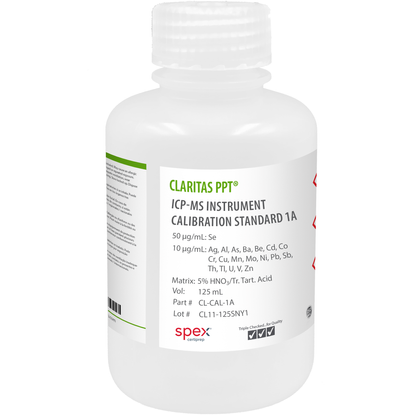 Claritas PPT® Grade ICP-MS Instrument Calibration Standard 1A in 5% HNO3/tr. Tartaric Acid, 125 mL