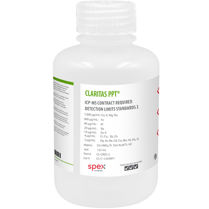 ICP-MS Contract Required Detection Limit Standard 2 in 5% HNO3/tr. Tartaric Acid/tr. HF, 125 mL