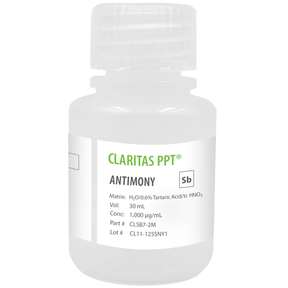 Claritas PPT® Grade Antimony, 1,000 µg/mL (1,000 ppm) for ICP-MS in H2O/0.6% Tartaric Acid/tr. HNO3, 30 mL