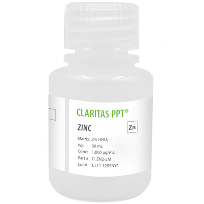 Claritas PPT® Grade Zinc, 1,000 µg/mL (1,000 ppm) for ICP-MS in 2% HNO3, 30 mL