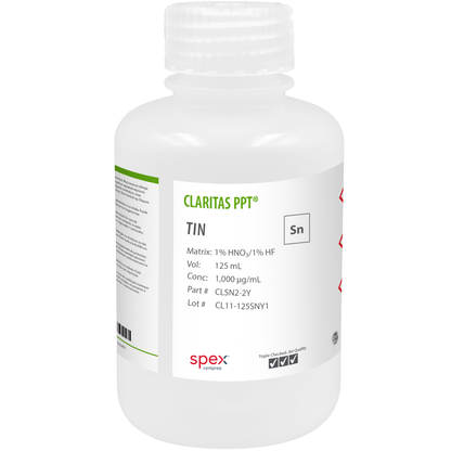 Claritas PPT® Grade Tin, 1,000 µg/mL (1,000 ppm) for ICP-MS in 1% HNO3/1% HF, 125 mL
