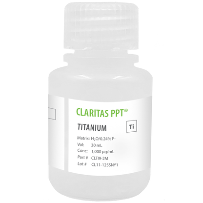 Claritas PPT® Grade Titanium, 1,000 µg/mL (1,000 ppm) for ICP-MS in H2O/0.24% F-, 30 mL