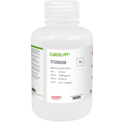 Claritas PPT® Grade Titanium, 1,000 µg/mL (1,000 ppm) for ICP-MS in H2O/0.24% F-, 125 mL
