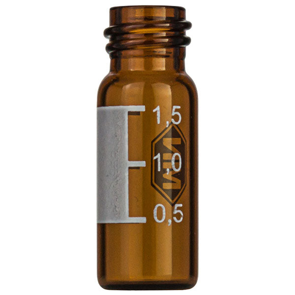 - Screw neck vial, N 10, 11.6x32.0 mm, 2 mL, label, flat bottom, amber