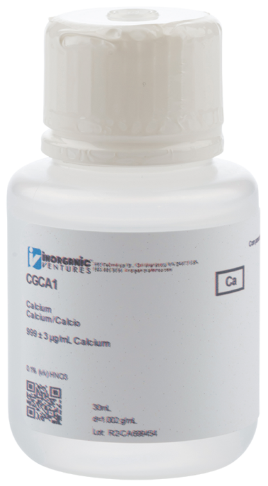CalciumLocation: Group 2, Period 4 Storage & Handling: Keep tightly sealed when not in use. Store and use at 20 ± 4°C. Do not pipet from container. Do not return portions removed for pipetting to container. Chemical Compatibility: Soluble in HCl and HNO3. Avoid H2SO4 HF, H3PO4 and neutral to basic media. Stable with most metals and inorganic anions forming insoluble silicate, carbonate, hydroxide, oxide, fluoride, sulfate, oxalate, chromate, arsenate, and tungstate in neutral aqueous media. Stability: 2-100 ppb levels stable for months in 1% HNO3 / LDPE container. 1-10,000 ppm solutions chemically stable for years in 1-10% HNO3 / LDPE container. Ca Containing Samples (Preparation & Solution): Metal (best dissolved in diluted HNO3); Ores (carbonate fusion in Pt0 followed by HCl dissolution); Organic Matrices (dry ash and dissolution in dilute HCl. Do not heat when dissolving to avoid precipitation of SiO2). The oxide, hydroxide, carbonate, phosphate, and fluoride of calcium are soluble in % levels of HCl or HNO3. The sulfates (gypsum, anhydrite, etc.), certain silicates, and complex compounds require fusion with Na2CO3 followed by HCl / water dissolution. Note that contamination is a very real problem when analyzing for trace levels. |