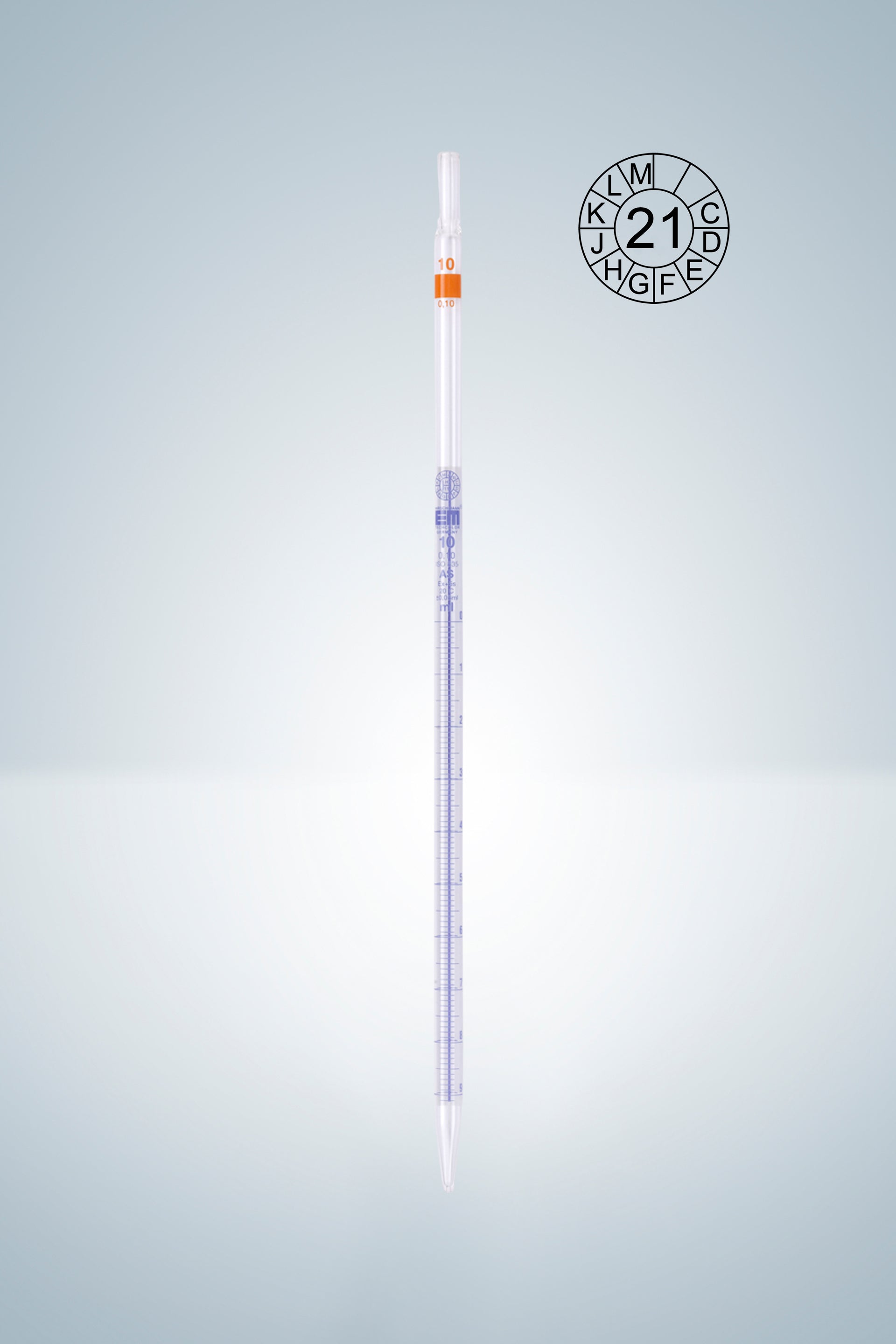 Graduated pipettes, class AS, blue graduation, 1:0,01 ml, Schellbach, main point ring graduation, graduated to tip, zero on top, type 3, from 5 ml on with a cotton plug end as standard, for additional qualitiy certificates, with declaration of conformity acc. to DIN 12600, with dated batch identification, acc. to DIN EN ISO 835.