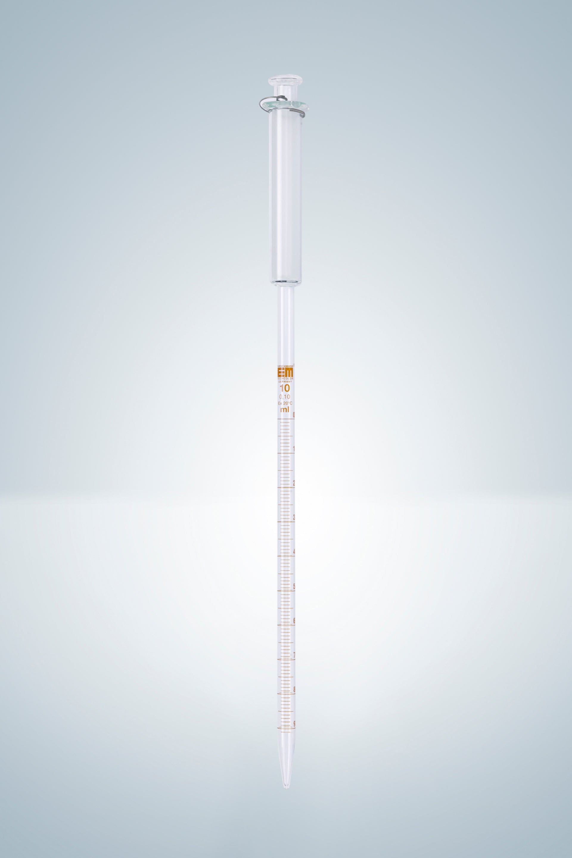 Graduated pipettes, with piston, amber stain graduation, 20:0,1 ml, graduated to tip.