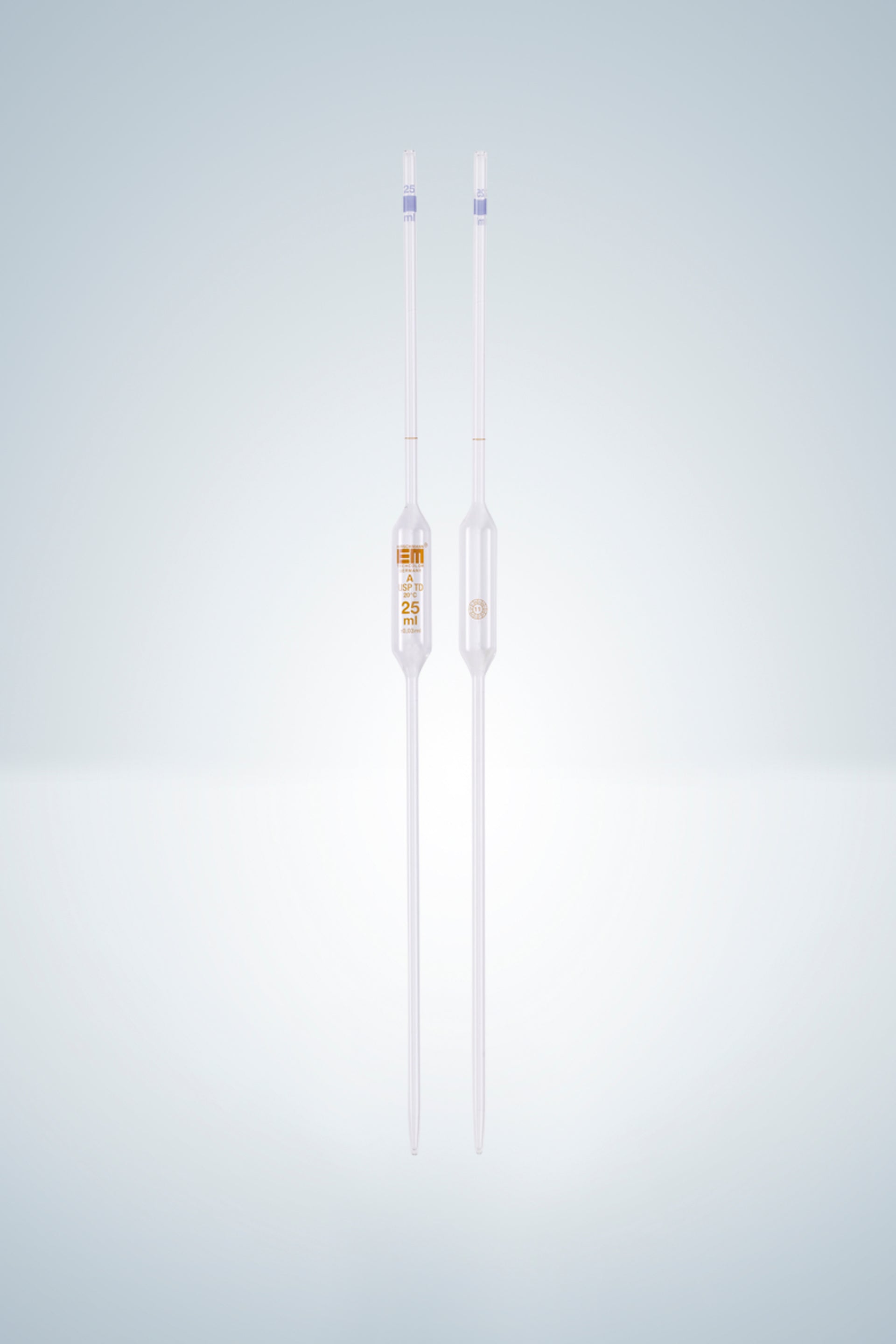 Volumetric pipettes, class A, USP, amber stain graduation, 8 ml, one mark pipettes. With dated batch indentification for free (www.hirschmannlab.de/Services/Calibration certificate). USP certificate available (Code-No. 9980104).