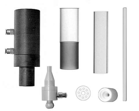 Demountable Torch Assembly, Complete, for Horiba, Jobin Yvon. P/N Cross Reference(s) JY: 21.356.110 This demountable torch assembly ships completly assembled and is comprised of the following components: Demountable Torch Body (Precision Glassblowing P/N: 160-45), Radial Outer Quartz Tube (PG P/N: 160-50), Inner Quartz Tube (PG P/N: 160-52), Alumina Injector and Insert (PG P/N: 160-61), Centering Ring (PG P/N: 160-53) and PEEK Sheath Gas Adapter (PG P/N: 160-64).