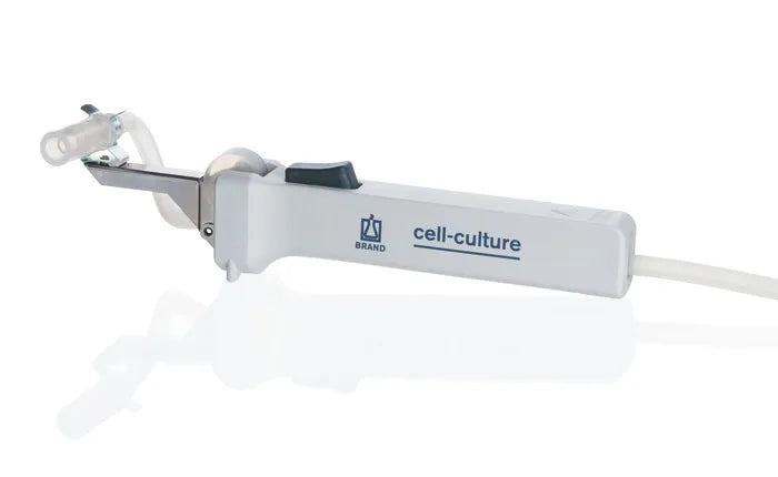 This instrument allows aspiration of excess liquids. The instrument is applied with 3 different adapters to hold pasteur pipettes, capillaries, or pipette tips (100 μl). For easy fitting of pipette/pipette tips the adapter can be rotated. For aspiration of liquids, the instrument must be connected to a collection bottle and a vacuum pump.