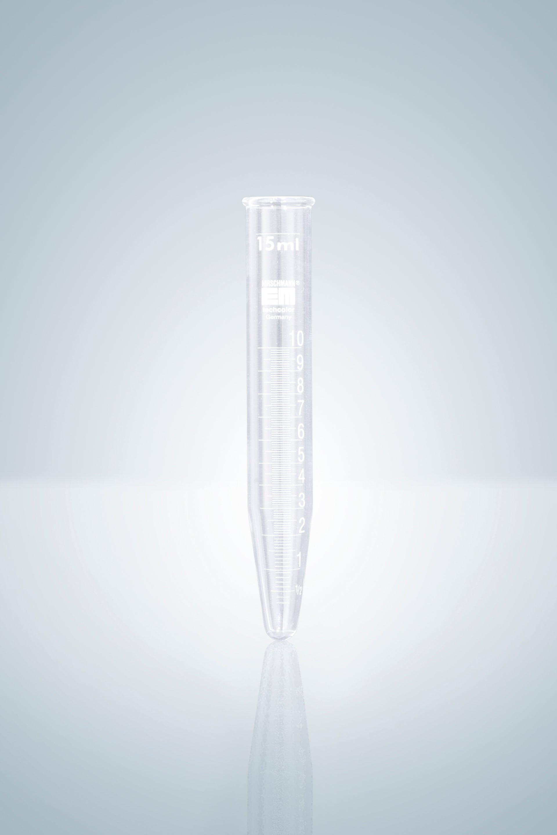 Centrifuge tubes, white graduated, long conical form, Vl. 15 ml, Teil. 10:0,1, L 115 mm.