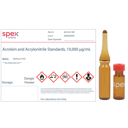 - Acrolein and Acrylonitrile Standards for US EPA Method 603, 10,000 μg/mL (10,000 ppm) in Methanol-P&T, 1 mL