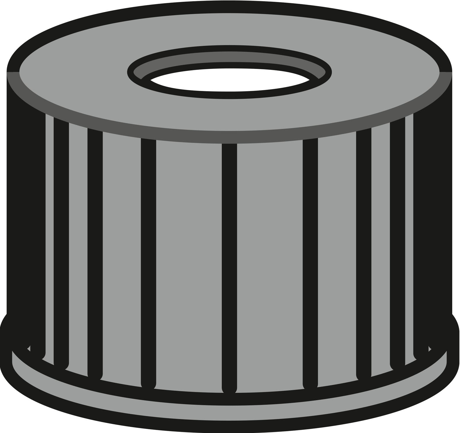 - Screw closure, N 8, PP, black, center hole, Silicone white/PTFE red, 1.3 mm