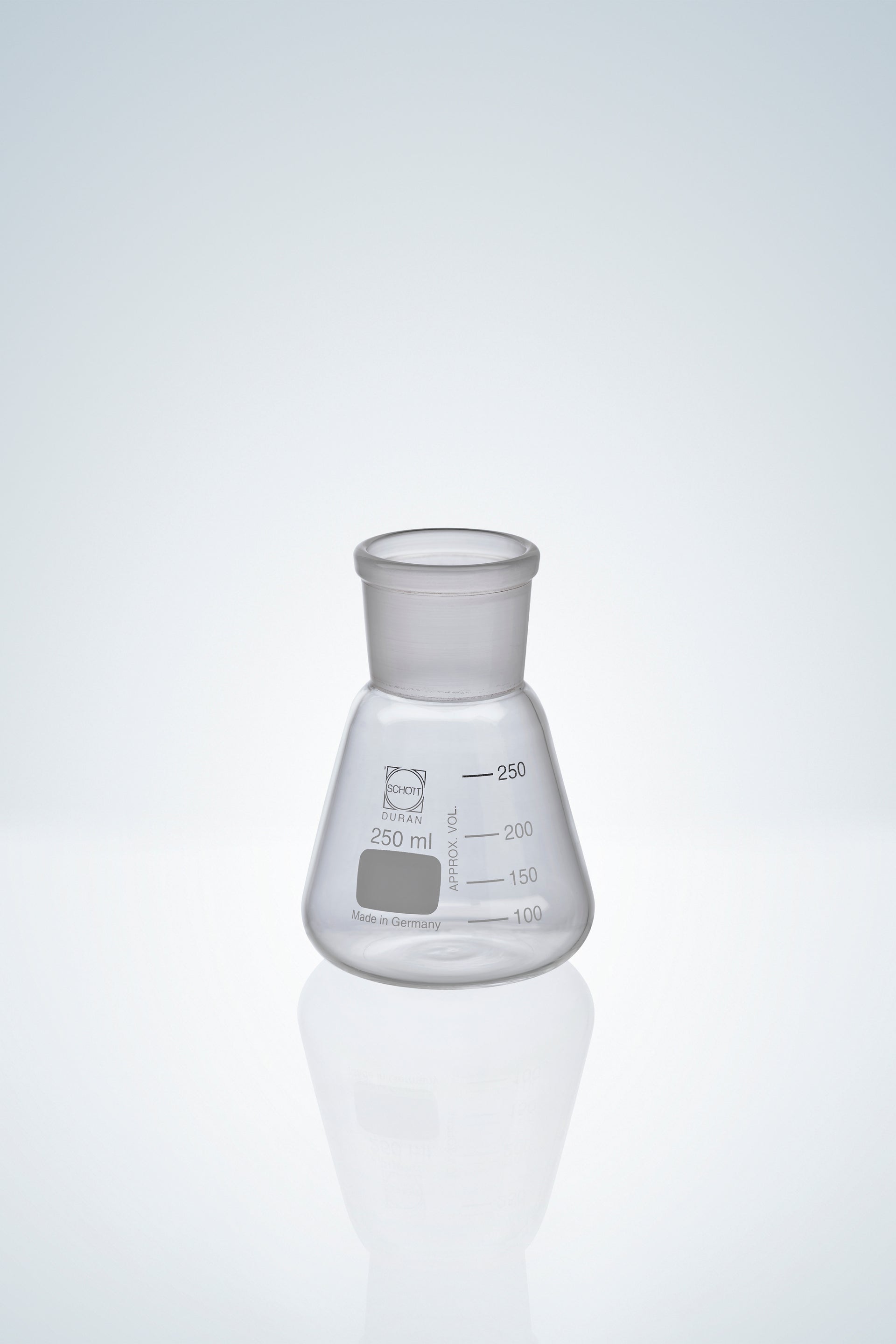 Erlenmeyer flasks DURAN®, white graduation, wide neck, NS 45/40, 1000 ml, height 220 mm, acc. to DIN 12 387.