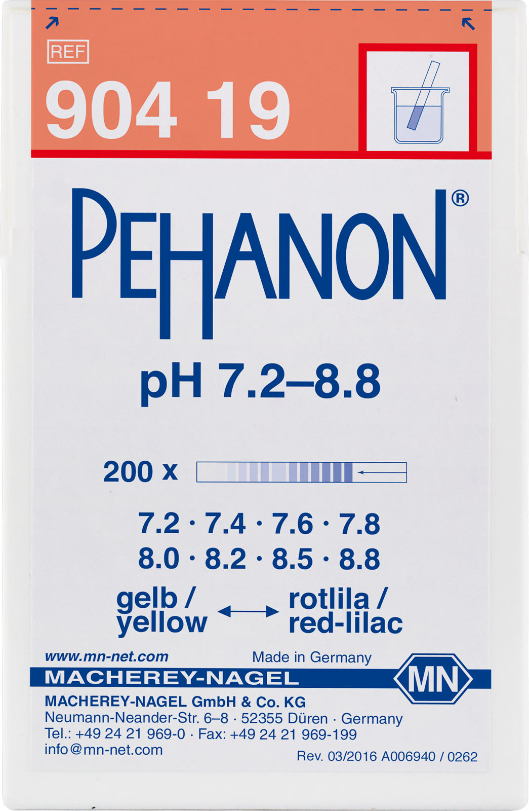 - pH test strips, PEHANON 7.2–8.8, for colored samples