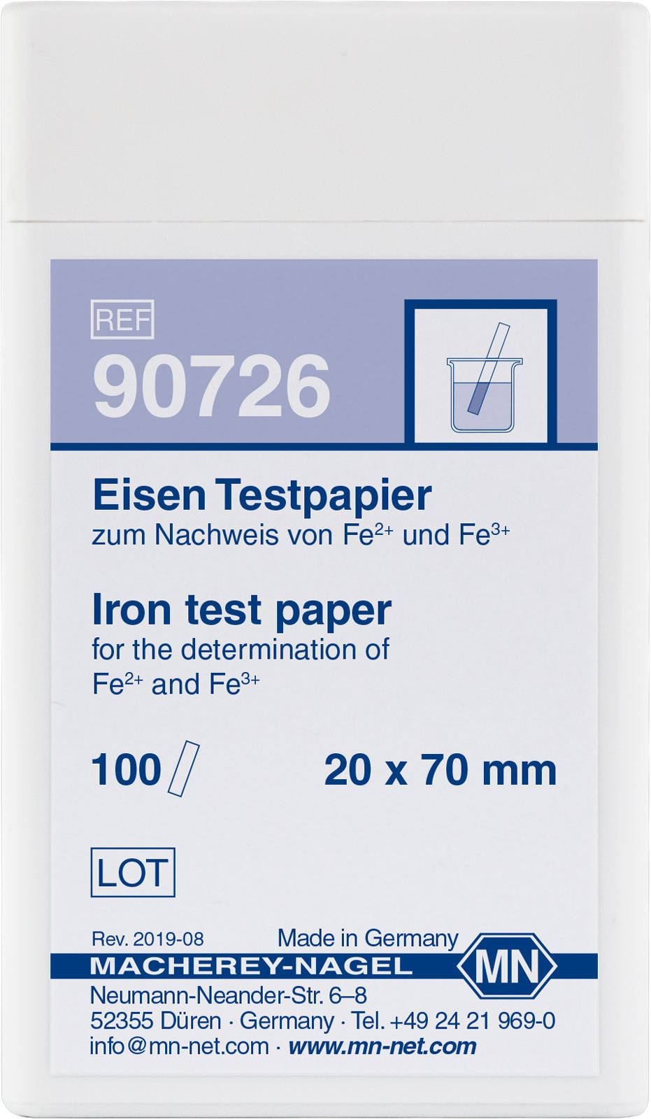 - Qualitative Iron test paper for Iron: 10_mg/L Fe²_ or Fe³_