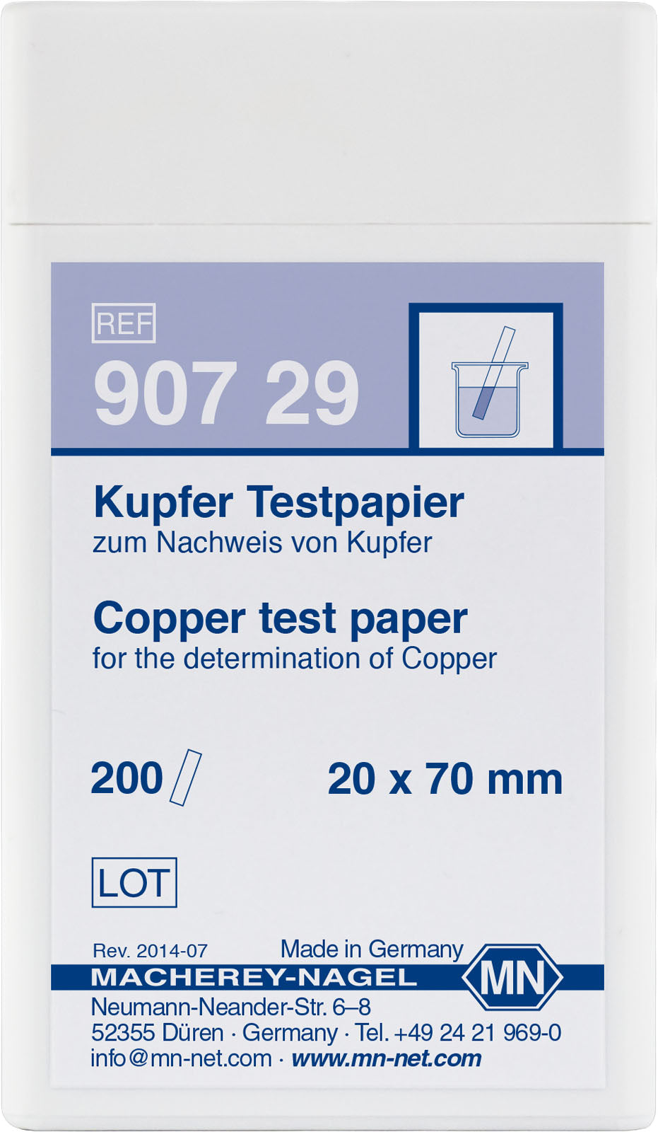 Copper test paper allows the quick and easy detection of Copper (Cu⁺ and Cu²⁺).