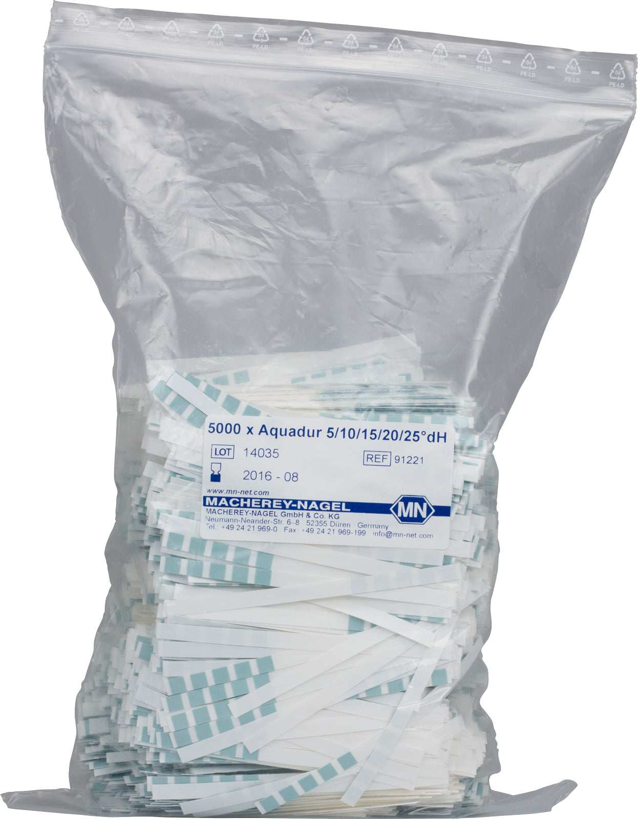 - AQUADUR 5–25, for water hardness, 5000 strips