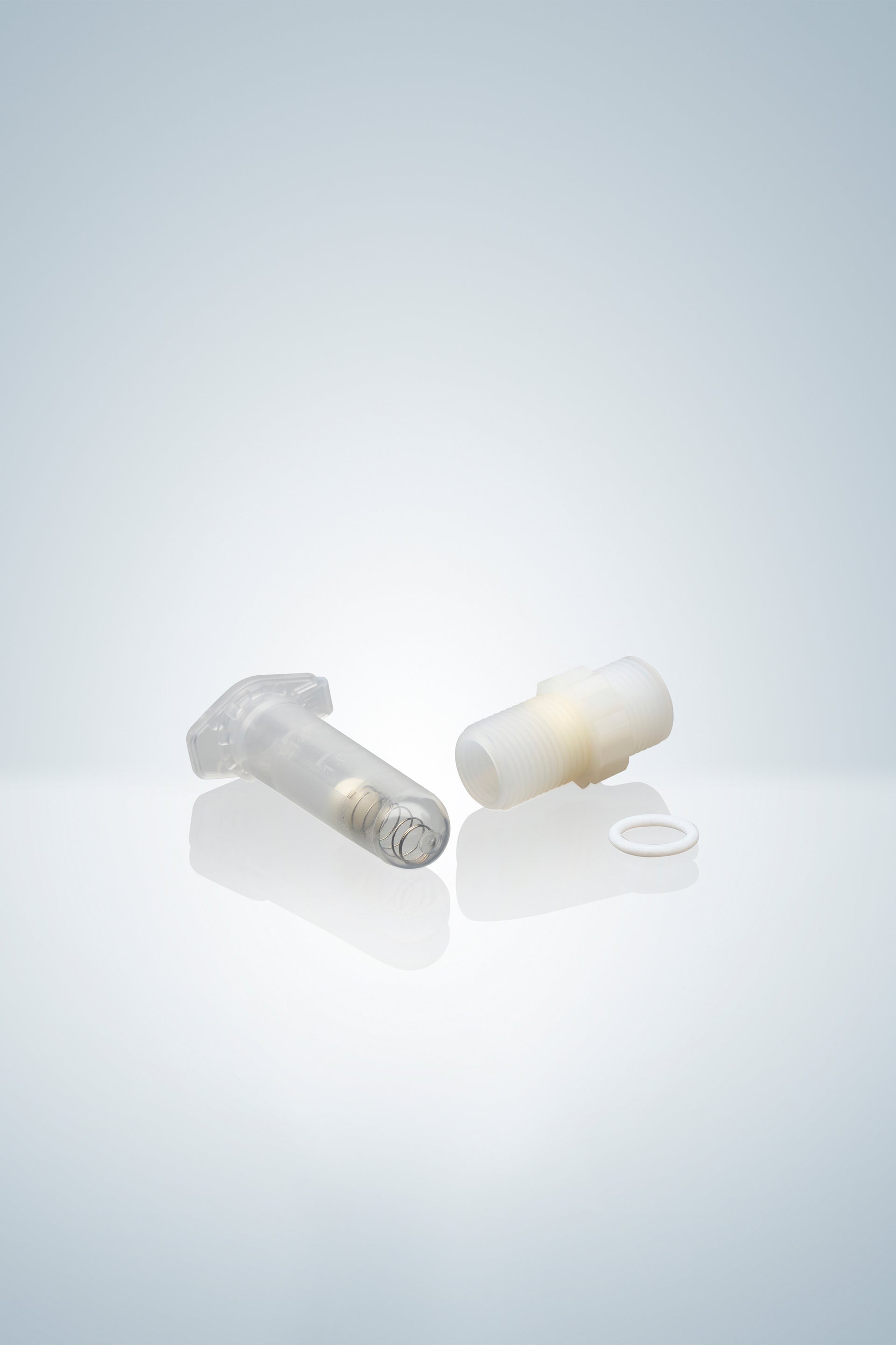 Suction valve, valve seat/ball made of high purity alumina ceramics (Al2O3 99,7%), spring made of Hastelloy for Opus®, Ceramus®, Ceramus® classic from 25 ml, Solarus® & Ceramus® HF.