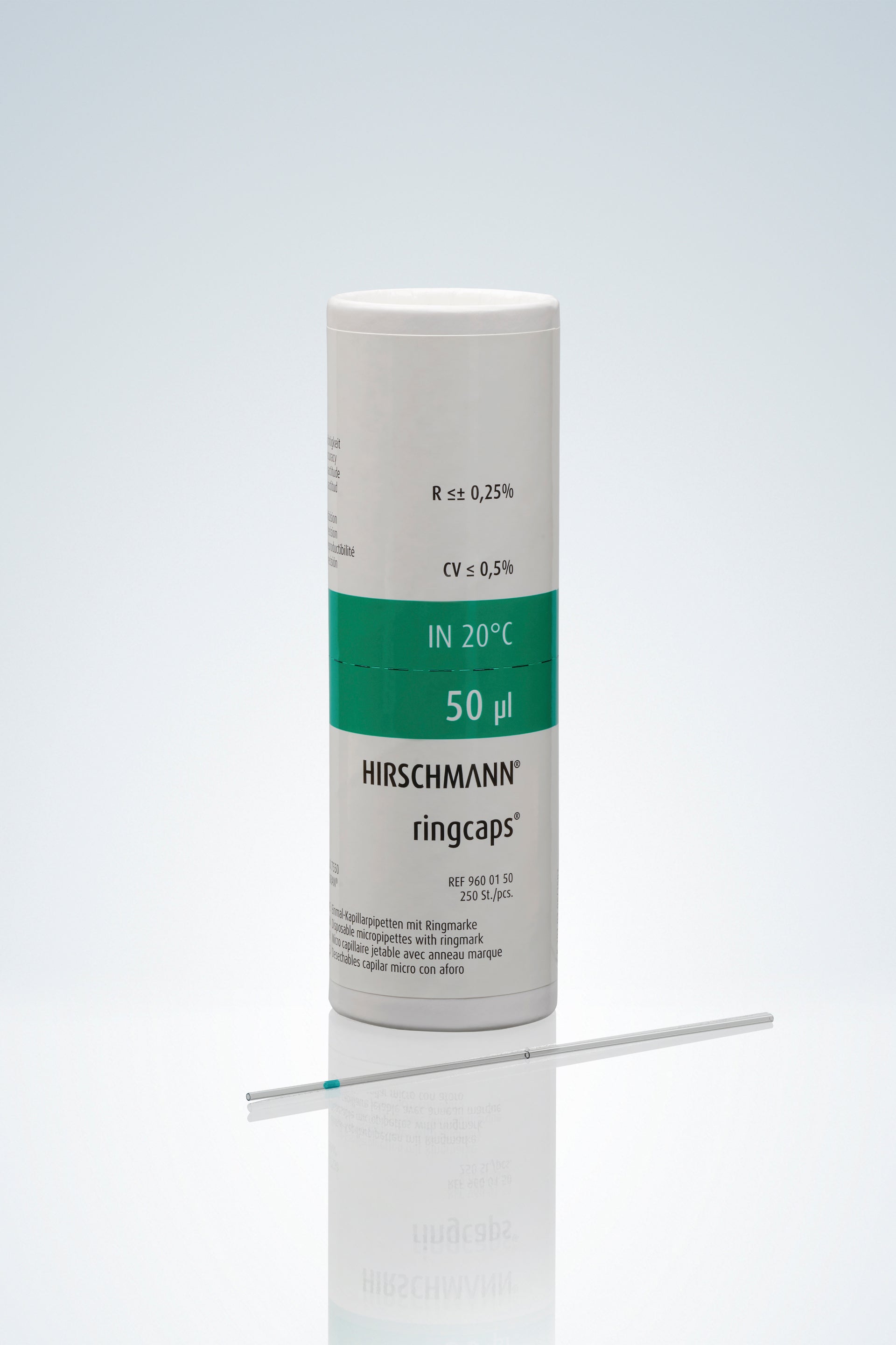 ringcaps®, 50 µl, disposable capillary pipettes, DURAN®, with declaration of conformity acc. to DIN 12600, with ringmark, ISO 7550, CE acc. IVD 98/79 EC.