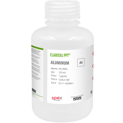 Claritas PPT® Grade Aluminum, 1 µg/mL (1 ppm) for ICP-MS in 2% HNO3, 125 mL