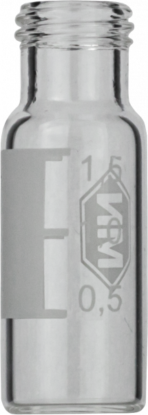 - Screw neck vial, N 9, 11.6x32.0 mm, 1.5 mL, label, flat bottom, clear